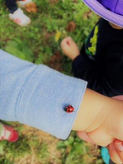 2019.10.16 03.主要な保育活動 ainohikari-2 10月、散歩風景 気候の良い季節となりました。子ども達は、園庭遊びのみならず、園外への散歩を楽しみながら、様々な生き物、植物を発見し、触れる時を楽しんでいます。畑の横の栗の木に、大ぶりの栗がたくさんなりました。足で器用にイガを剥いて、栗を収穫しました。イガの痛さも味わいつつの秋の味覚でした。